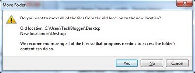 4. ცვლილებების დასადასტურებლად დააწექით Yes-ზე, რათა D დისკზე Desktop პაპკაში გადაკოპირდეს ეკრანზე არსებული ყველა ფაილი. იხილეთ სურათზე: