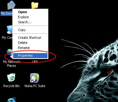 1. My Document-ის პაპკაზე დააკლიკეთ მაუსის მარჯვენა ღილაკზე და გამოსულ მენიუში დააწექით Properties. ნახეთ სურათზე: